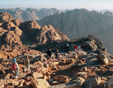 每天都会有许多的游客,早早的爬上山峰来观看这里绚烂的晚霞,真的是美不胜收西奈山是红海和西奈半岛上的主峰,这里四周都是连绵不绝的大山,站在西奈山的高处,可以远眺远处的红海。每天都会有许多的游客,早早的爬上山峰来观看这里绚烂的晚霞,真的是美不胜收。