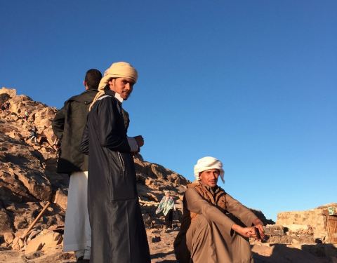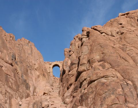 登西奈山又称摩西山。夜里登山,看完日出,边下山边欣赏西奈山的奇石。