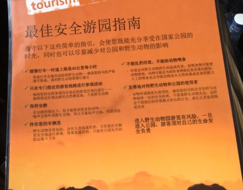 去之前一定要买好一天的吃喝。公园里没有商店要不会饿肚子的!入口的地方有地图可以索取,有部分中文。能不能看到吃肉动物要看运气了。