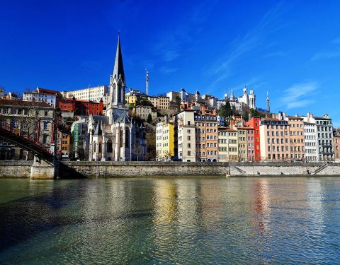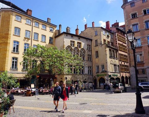 里昂老城位于索恩河的右岸,富维耶山脚下,古时是渔村,15世纪时成为世界上较大的丝织品产地之一,17世纪曾是法国的经济和文化中心。 漫步老城,穿越回中世纪 如今,这里仍然保存着许多15-17世纪的古旧建筑,许多中世纪、文艺复兴式及古典式的房屋彼此相连,街道由鹅卵石铺设,走在其中,仿佛回到了中世纪。 街旁精品店、手工艺店、餐馆、咖啡馆林立,在逛街的同时别忘了抬头看一眼街边的建筑,五颜六色的小房子十分明快,怪兽状的排水口、刻在窗棂上奇形怪状的石雕装饰都赋予了老城区别样的魅力。 主要景点推荐 圣让首席大教堂 游览里昂老城,不妨从索恩河畔的圣让首席大教堂开始,教堂的正立面呈华丽的尖顶哥特式风格,入口处装饰有280块四方形的华丽浮雕。位于教堂北翼的天文钟每逢正午12:00、14:00、16:00都会鸣钟报时,届时钟内的小人们出来“亮相”。 国际微缩电影艺术博物馆 位于离大教堂不远的圣·让大街上,这间小而精致的博物馆里各式各样来自世界各地的微缩电影场景,置身其中,恍如步入小人国,十分有趣。 里昂城市和木偶博物馆 位于老城北部的里昂城市和木偶博物馆也很有人气,这里完整地收集了世界各地的木偶,参观后可以在博物馆花园内小憩一下,喝杯咖啡,感受一下这个有着悠久历史的城市。 创意市场和艺术市场 若恰逢周日,你还可以去木偶博物馆东边的创意市场和艺术市场逛一逛(Marché de la création et Marché artisanal),周日早上的6:00-13:00,里昂的艺术家们会汇集在这里,出售自己的作品,画作、雕塑、手工艺品等琳琅满目,有中意的就把它带回家吧。 富维耶山 这座山是里昂的摇篮,也是里昂基督教的发源地。山间有小路蜿蜒向上,但较省力气的还是乘坐索道上山,出发点在Edouars Commette广场。这座基督教发源地的“祈祷之山”上有建于19世纪的巴洛克风格的富维耶圣母院,还有里昂高卢罗马剧院遗址和里昂高卢罗马博物馆。山顶的梯田是俯瞰城市全景的好地点,在这里你还可以看到汇集在两条河流中间的半岛区,晚上也是个赏夜景的好地方。 特色餐饮 在老城区也有不少地道的里昂传统餐馆(Bouchon)。里昂的传统菜以猪肉为主,大约30欧左右就能吃一顿非常正宗的里昂菜,包括里昂色拉(Salade Lyonnaise)、猪肉香肠(Saucisson)、猪下水(Andouillettes Tripes)等。