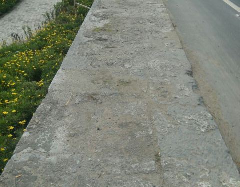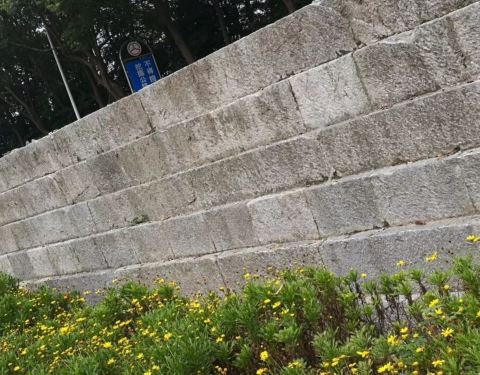 看上去像用条石砌起的墙,一点也不起眼,就在公里旁,如果没有石碑提示真看不出来。
