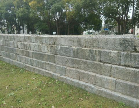 那是雍正年间建造的海塘,距今三百多年了。海塘依旧海岸已经在此处三公里外了,显然已经没有任何功能了,所以现在看起来就像一道石墙延绵近十公里。我们现在看到的图片是拍摄自奉柘公路海湾路口的一段纪念公园。此处遗迹沿奉柘公路和上海应用技术大学围墙间的狭长地带展开,围墙内300年前的海面现在已经是一所高等学府了。
