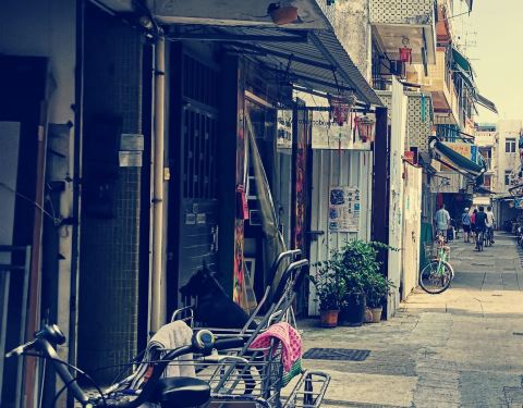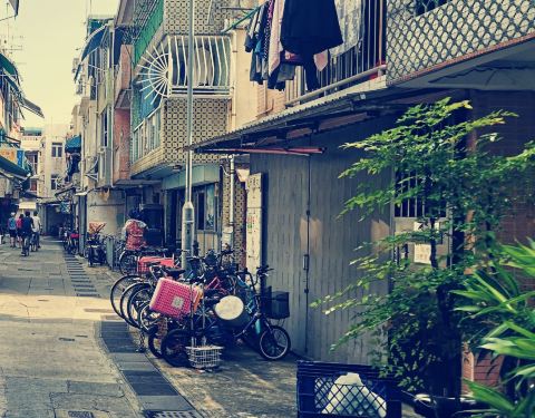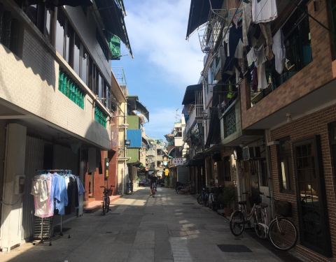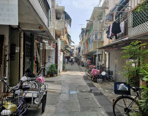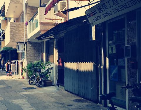 长洲岛似“哑铃”,两头粗圆,中间细长。而北社街与新兴街就是这“哑铃”中间的手握之处,最轴心的位置。这里不似海边大排档及横穿岛屿全是小吃摊的长洲家乐径那样的喧嚣,这里静静的,两三层的民宅是岛屿居民静静过日子的地方。