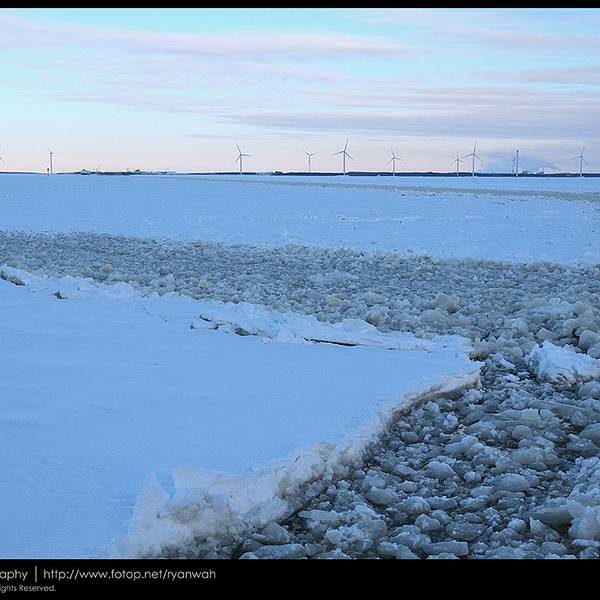 寒风凛冽,吹得皮肤刺痛,心情却无比舒畅。值得体验值得体验。港口附近的海面上耸立着海上风力发电机,海水结冰,一片白茫茫的冰雪世界。寒风凛冽,吹得皮肤刺痛,心情却无比舒畅。
