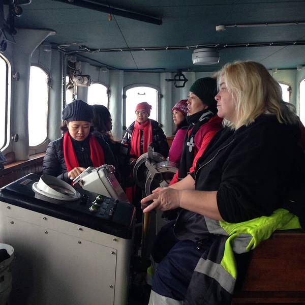 偶然发现飘落的雪花是如此的美丽!每天都有刺激和精彩!登陆破冰船,全体工作人员列队欢迎我们每天都有刺激和精彩!今天是Sampo破冰船和大海漂浮!登陆破冰船,全体工作人员列队欢迎我们!非常nice的工作人员,开船的女士,船长和他的帽子,和其他船只厚度对比的钢板样板,破冰能力达到80-120厘米