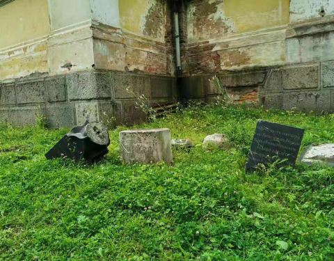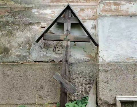 还发现了一个被扔在角落里的十字架;还有被损坏的几个墓碑(虽然自称目的爱好者,但是看不懂上面写的俄文)