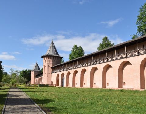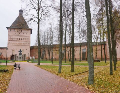 叶辅米罗夫救世主修道院坐落于苏兹达尔小镇上,建于1352年。里面有教堂、钟楼和各种各样的展览,整个修道院用一圈红砖墙围起来。