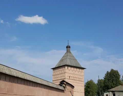 遗憾的是去的时候忘记查看开放时间了,周一是不开放的,所以只能在外部看看苏兹达尔最大的一座修道院,由红色的围墙围绕。遗憾的是去的时候忘记查看开放时间了,周一是不开放的,所以只能在外部看看。在这里河对岸还有座囚禁沙皇失宠妻子的“冷宫”修道院。