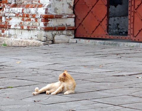 按照导游的线路走完了,利用别人逛商店的时间拉着新朋友走到一处正在修理的半废弃状态的所在,走在杂草荒芜的院子里,发现后面有一个小祈祷室;还发现了一个被扔在角落里的十字架;还有被损坏的几个墓碑(虽然自称目的爱好者,但是看不懂上面写的俄文)