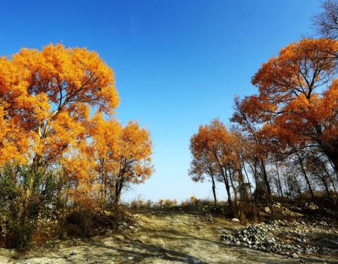 叶尔羌河大桥两岸的胡杨林,在秋天还是很不错的。