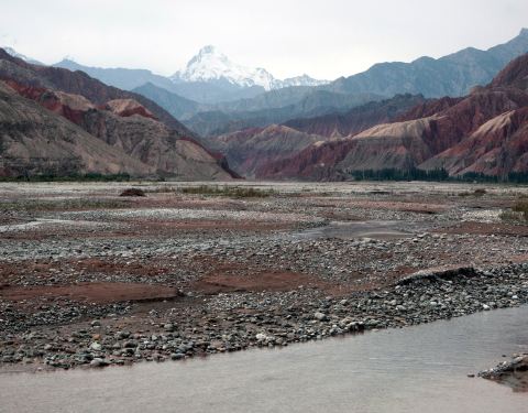 从喀什出发一头扎进昆仑山中,沿着叶尔羌河向墓士塔格峰、卡拉库里湖进发。沿途经过宫格尔峰,宫格尔九别峰在昆仑群山中时隐时现。经过布伦口时有一座人称白沙山的景观非常美丽碧清的布伦库勒湖水映衬着白沙山就是一幅美丽的水墨画。群山背后的墓士塔格已经露出她的雪峰。喀拉库勒湖是高原湖泊,它与布伦库勒湖同处阿克陶县帕米尔高原上布伦口乡两者相距直线仅十来公里。当我们驱车冲过这段距离时天空突然发生了变化——乌云密布接着雨点砸了下来。等到了卡湖已经是烟雨蒙蒙,对面的墓士塔格峰消失在雨雾中!此行的最大遗憾。