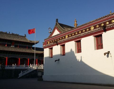 包头召是包头市东河区一座极有特点和历史的寺庙!既是一座家庙,又是一座革命纪念馆;既有藏式庙宇,又有汉式大殿;既供奉着西天佛祖,又供奉着民族英雄。经幡猎猎,红旗飘飘。飞檐翘角,彩画斑斓。且不收门票,很值得一去!