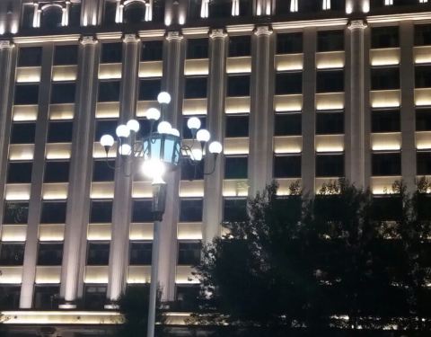 坐落在包头新城区,交通方便。广场一侧是香格里拉饭店,一侧是万达广场,周边较繁华。广场有草坪、喷泉,晚间周边建筑物有景观照明。我是国庆期间去的,天气有些转凉,晚上广场上没什么人,想来夏天的时候,应该人不少。