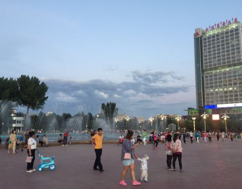 就是包头青山万达广场旁,广场上有处小喷水池,很多市民傍晚相聚在池边游玩,特别多的小朋友