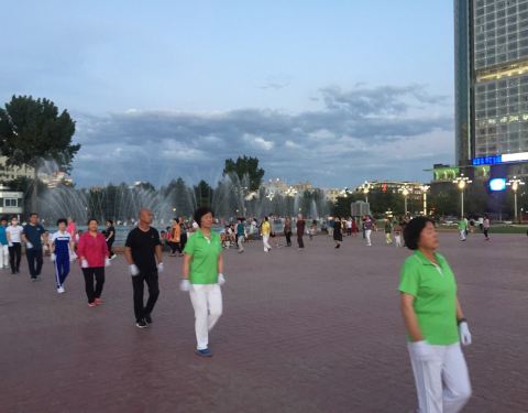 银河广场在市中心,旁边有万达广场,我们吃过晚饭八点多过去,天还没有完全黑,广场上很多市民,遛狗的,跳舞的,很和谐的画面。