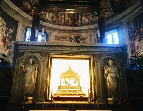 ...多禄锁链堂,真的里面供奉着锁链呢,还有摩西雕塑比较出名的,天花板有部分有壁画,还有骷颅造型雕塑特米尼火车站周边的一个免费参观的教堂,圣伯多禄锁链堂,真的里面供奉着锁链呢,还有摩西雕塑比较出名的,天花板有部分有壁画,还有骷颅造型雕塑