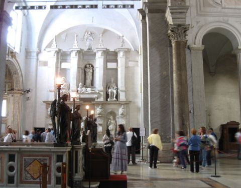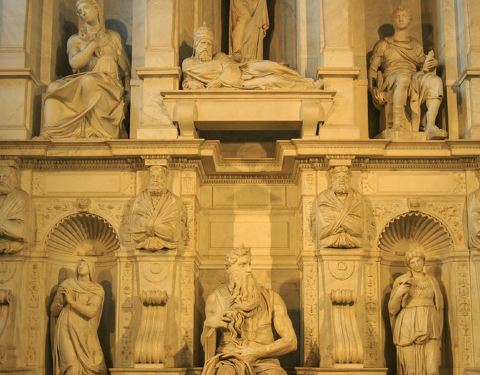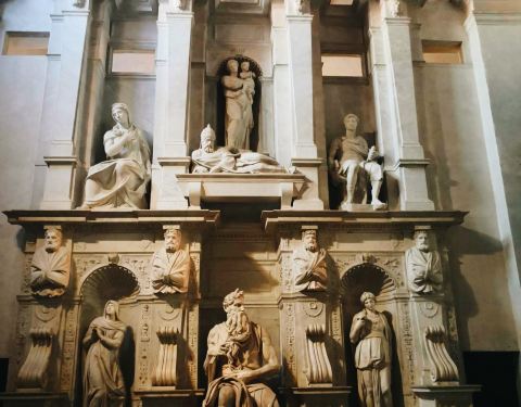 所有的游客都是慕名来参观一下这ㄦ教堂外表不怎麼樣,但那儿有米开朗基罗的作品:梅瑟像,是用绝佳的大理石雕刻成的,成为镇堂之宝。所有的游客都是慕名来参观一下。