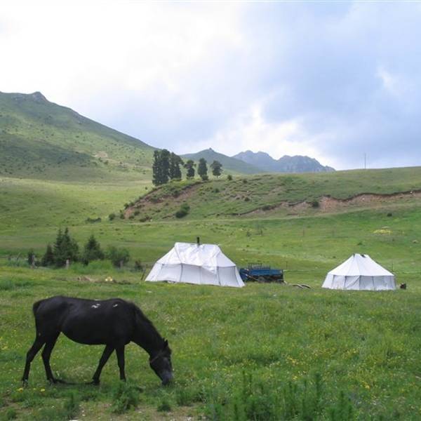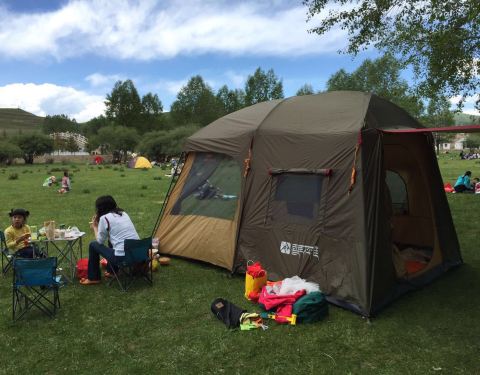 山前是一片灌木林,隐约可见河流流过,估计里面风景不错。我正欲前行一探究竟,忽然传来一阵狗吠,只见远方草地上栓有一只藏獒正在冲我这边叫嚣,昨天刚吃过苦头,我哪敢再冒险,只能匆匆退去。虽未走到尽头,但来回也花了约6小时,只偶尔碰到几个游客。