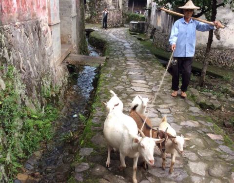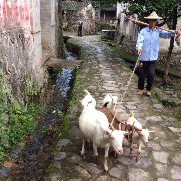 我们宿在古村落埭头村,三棵大樟树是村庄的吉祥物,傍晚,村子里依然安静,羊儿随主人归家了,古朴奇特的水井入眼,湿滑踏步的浣衣池惹目,古戏台保护完好。乡土气息浓厚,民风极其淳朴。