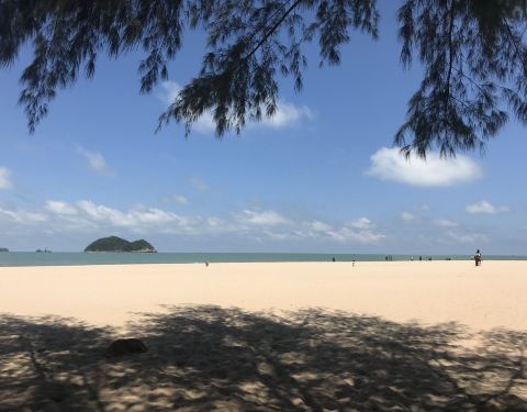 这是一片宁静美丽且干净的海滩。据说,沙滩附近的海域,一度曾是海盗据点,但如今已成为宋卡著名的风景区。