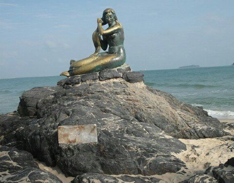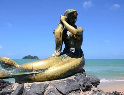 有一座很显眼的青铜制美人鱼雕像,以表达对印度教中大地女神的敬意。传说这是一名善良的宋卡姑娘,在沙滩上邂逅了一名水手,两人坠入爱河。当姑娘怀了水手的孩子时,水手却再度启航。天真的姑娘深信水手很快就会回来迎娶她,天天都到沙滩等待。年复一年,日复一日,水手始终没有回来。最终姑娘化成美人鱼铜像,永远守望着撒米拉海滩。喜欢这个地方,值得来!