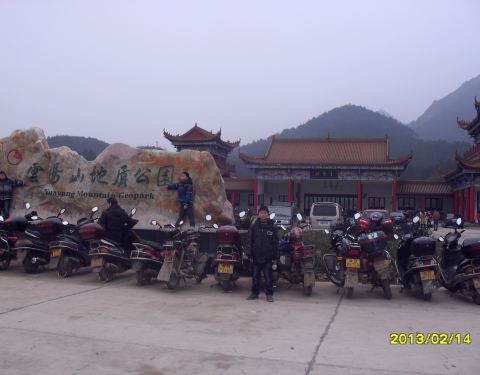 爬到顶峰,已经是下午五点多了,天色已经晚,一路上我们都是打着手电筒抹黑下山的。到了山脚下的西门已经是晚上的七点多钟了,山上完全看不到一户人家,很刺激惊险的说,会吓死人的。而且小道又不好走。一直绕了两个小时,心里在想不会遇到鬼吧 哈哈 我可是拜了老子,加上我背包上背着葫芦的 有妖魔鬼怪也被我背包上的葫芦给收了吧。零零散散看到几只萤火虫估计已经快带山脚下了吧,来到山门前,我的小伙伴李宁拦了当地人的顺路车先到县城里帮我们叫了辆的士来救我们 哈哈 这里要感谢淳朴的当地人免费载我的小伙伴,要不然我们不知道还要花多久才能走到有车的地方,当然我的小伙伴也辛苦了。