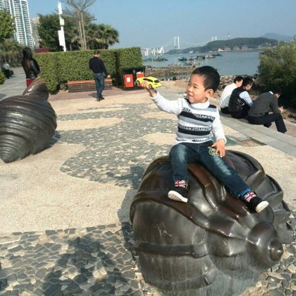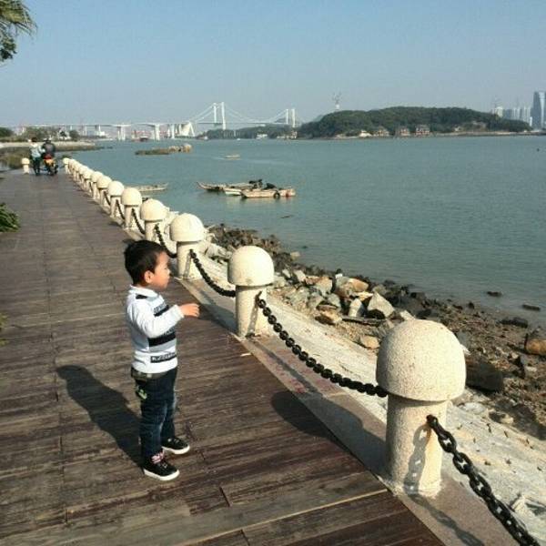 海沧湾公园景色优美,小朋友周末均喜欢在附件骑自行车,放风筝~