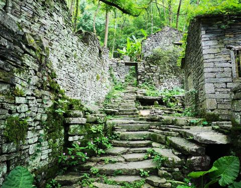 古石城详解: 1、用高德或百度导航‘’古石城‘’就可以直接来到石头村下面的小耀门村的停车场,往左边走沿着小村的路一直往山上走大约20分钟就来到大冲村即石头村。再沿着石头村内的石阶一直往上走,可到山顶一小平台,俯瞰周边山景,包括小耀门村及其停车场。我们从停车场开始步行沿路往返,约90分钟。 2、我们在周日来的,石头村有村民收费,在现存第一个城门收费每人10元。 3、石头村所有房屋均用石头彻筑但现已废弃,非常值得来,犹如绿野仙踪。 4、古石城则范围很大,涵盖了石头寨,有4个城门,我们从西门走到了东门,约3小时。去西门,也需要把车停在小耀门村的停车场,往左沿着村路走20米左右,右边就有一条难走的机耕路,沿着机耕路走20分钟,路的左边有一条毫不起眼的石阶路,从这再走5分钟即到西门。因没标识,极易错过,而且村民说的东南西北门是指古石城,在停车场问路时一定要注意问清楚如何去石头村及古石城。