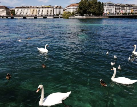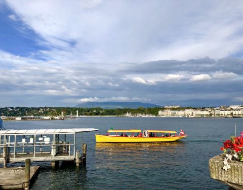 日内瓦湖又名莱芒湖,横跨瑞士和法国,是西欧的重要湖泊,也是有名的风景区和疗养地。白天你可以乘坐游船游览,晚上陶醉于岸边闪烁的霓虹,还时常有豪华游轮在湖面上举办音乐会或舞会。 景区概况 整个湖泊略呈新月形,北岸和东西两端分属瑞士沃州、瓦莱州和日内瓦州,南岸则属于法国上萨瓦省。湖东西长约75公里,南北较宽处约14公里,湖水较深处330米。 宜人湖景 湖的两岸气候温和,四季宜人。湖水、雪山和蓝天连成一片,成千上万的水鸭在湖面翱翔,天鹅在水中游弋。游艇和彩色帆游弋湖中,成群白鸽在湖畔徜徉,和平宁静。 欣赏大喷泉表演 湖中,最引人注目的就是那个巨大的人工喷泉,宛若鲸鱼喷出的水柱,大喷泉每次可喷出140米高、500公升喷水量的泉水,其壮观景象从日内瓦各地都可以望得见。到了晚上在灯光的照耀下大喷泉会显的更加宏伟壮观。 乘坐游船 一般游客游览都会选择乘坐游船,上船的地点一般在日内瓦的勃朗峰码头,将带你绕着大喷泉,游览湖水周边的景色。 湖边的慢时光 当然天气好的时候,你也可以选择漫步湖边,欣赏如明信片般的风景,给自己留下美好的回忆。要是走累了,也可以在湖边的露天咖啡馆里坐坐,点上一杯香醇的咖啡,慢慢度过一个悠闲的下午,等待唯美的日落。