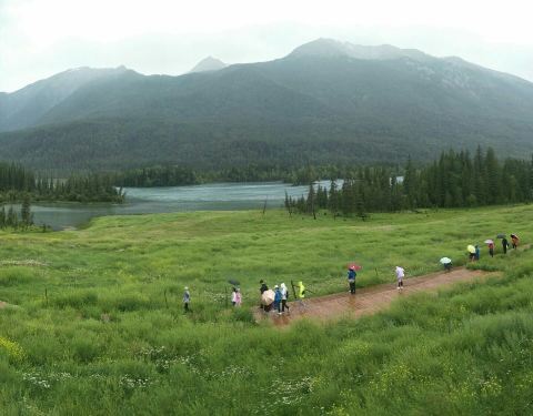 景区内都有摆渡车 不...八点左右从北屯出发 然后再布尔津吃了早饭于是又开启了国道之旅 大概到下午三点左右到的贾登峪 办理入住休息了一下就去喀纳斯景区了