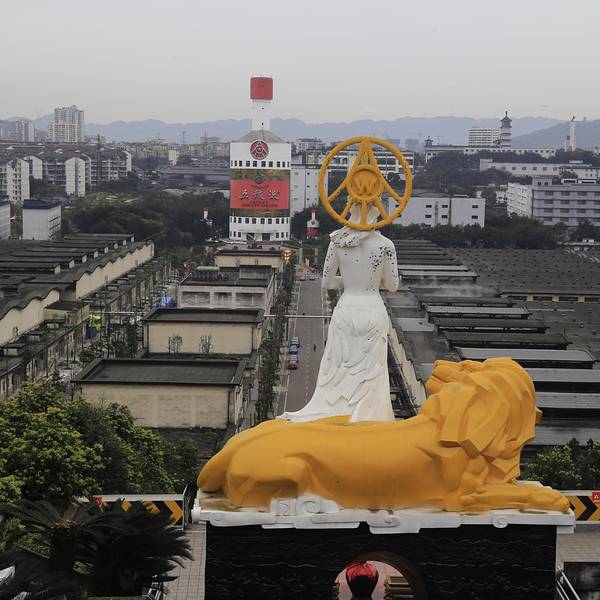 酒都宜宾之五粮液酒厂 五粮液是浓香型白酒的代表,以小麦大米、玉米、高粱、糯米5种粮食发酵精心酿制而成