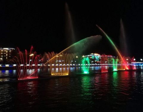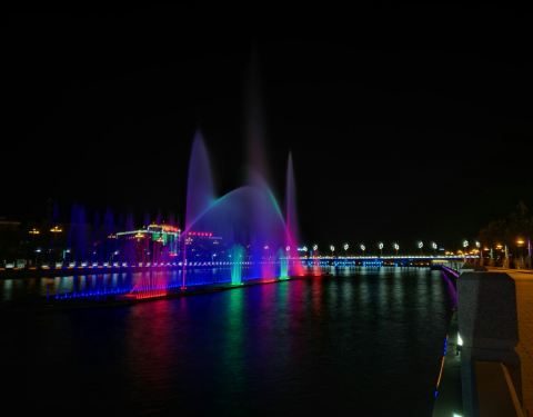 加上夜晚两岸灯火与河中彩色喷泉交相辉映,流光溢彩,巴音河的夜景大有不是江南胜似江南的感觉