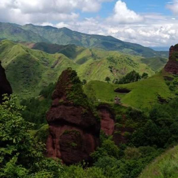 公山、母山都属于丹霞地貌,山上古木参天、颇具独特