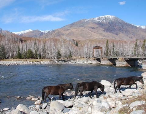 禾木村口的木桥,跨在禾木河上,算是禾木村比较标志的景点