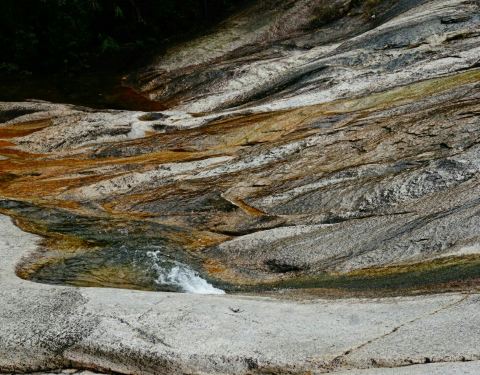 不太建议走的太快,沿途的青苔太多了,实在是很滑,景色只是也算是普普通通吧,顺着小溪走,工作人员...