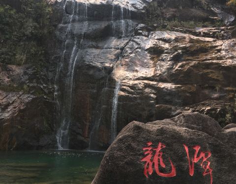 清远佛岗观音山位于清远市佛岗县西北。其中有一处著名景点:龙潭,位于景区内群山环抱之中。这里山清水秀,一条不高的瀑布落入山崖下水潭之中,清澈透凉,微风吹过,让人忘却了山外的滚滚热浪,流连忘返。