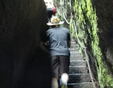 武夷山一线天内,“味道”实在太重,岩壁上还渗着水,脚下得注意了,不过只要不是大胖子,都能过去的。