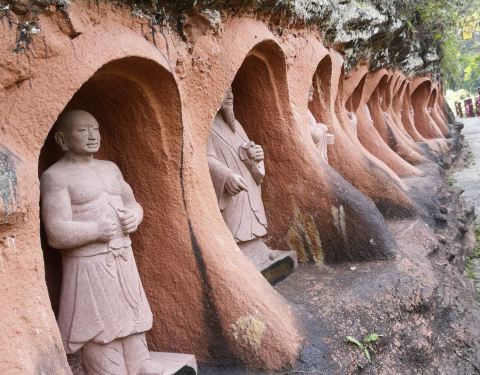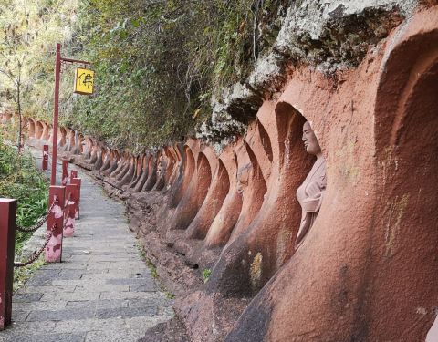 仙佛寺之万佛谷:位于湖北省来风县翔风镇仙佛寺景区内,走进景区在翰墨碑林左侧沿山势向前走,一个佛洞连着一个佛洞,约有两干米左右,每一个洞里都有一尊佛,形态各异,千姿百态,栩栩如生。