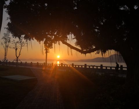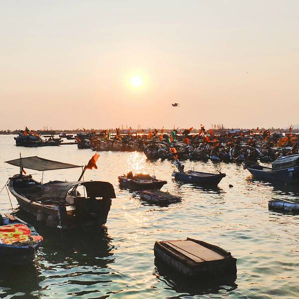 随着国内高铁网日益完善,高铁旅游逐渐成为游客们首选的出行方式。只需要几个小时,就能跨市甚至跨省。对于短途游而言,其价格甚至跟大巴价格相近。此次我们从深圳乘高铁到汕尾,二等座票价是55元,仅需1小时;对比乘大巴,耗时3小时,票价是37元。汕尾作为沿海城市,拥有美丽的滨海风光,同时也有着独具特色的汕尾小吃。美国国家地理曾称:这是一座来了不想走的城市、是一个让时间慢下来的“休闲之都。我们是中午抵达汕尾高铁站,出站左拐走几百米就到达公交站。坐6路,车身为绿色,到市区约1小时。然后从二马路步行到滨海大道,一条沿海景观路。步程在15分钟内,期间会穿过老街巷道。信步走到海边,不禁被眼前停泊的大量船只所惊叹,原来这里就是汕尾海港码头。船密密麻麻地漂浮在海面,每艘船上悬挂的红旗分为亮眼,温暖了视线。汕尾港是全国六大特等渔港之一,整片海域的水质特别优良,适宜海产品繁殖。当地渔民通常是在夜幕降临时开始捕捞,然后清晨归来,将最新鲜的海产拿到早市上去卖。夕阳下的渔港景象,橘红色的光染红了天空,洒在波光粼粼的海面。我们都沉浸在这其中,忘却了奔波的劳累。