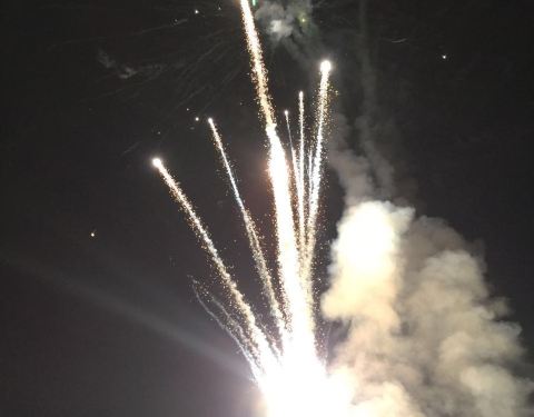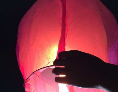 晚上还能在这放孔明灯,烧烟花,在黑夜中绽放美丽的光芒。非常开心。烧烤进行时,九点烧烟花