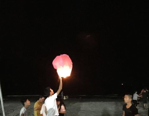 烧烤进行时,九点烧烟花。凉风有信,夏月无边,金沙湾畔,乐也悠悠!晚上还能在这放孔明灯,烧烟花,在黑夜中绽放美丽的光芒。非常开心。