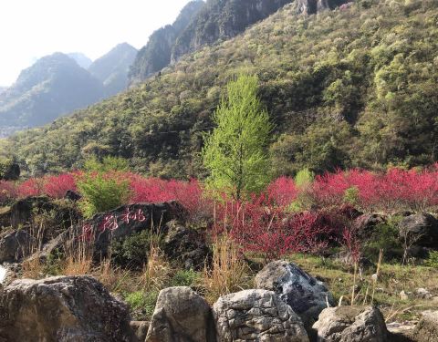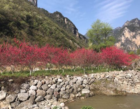 梦醉朝天吼 爱伴桃花开 ,我们一家人去的时候正好赶上樱花和桃花一起盛开的时节!粉白色的桃花明媚的张扬在枝头,如同人不老的容颜。一阵风起花瓣纷纷掉落,似飞舞的蝶,又似纷飞的雪,美丽缠绵。
