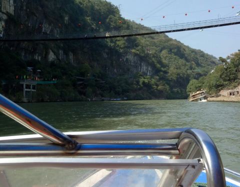 去玩了一次,感觉还不错,买的坐快艇的票,包含有游船观光,山水风景很漂亮,值得推荐,白马洞里的钟乳石里很凉爽,不错的景点,感觉值得