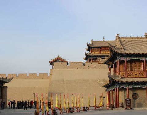 把戏台子架在城门口差点成了城门楼的影壁在我行遍天下的旅程中还是首次见到,不过看看连点绿色都没有的关城,天地都是一片黄色的四周,再想想那个没有WiFi的日子,算了,我是司令官可能都会睁只眼闭只眼。