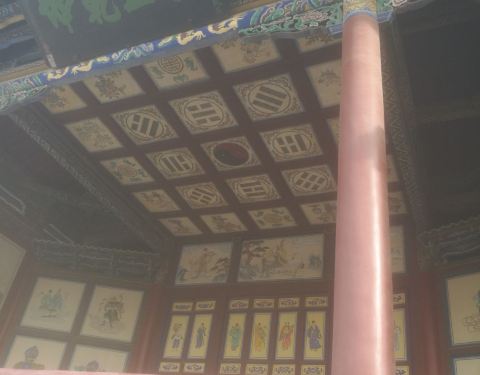 这个戏台挺有意思,寻常太极图都是黑白的,它是黑红的