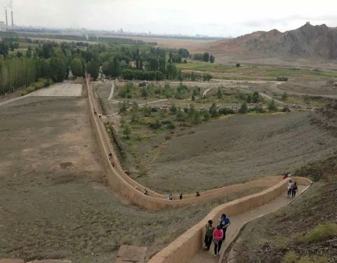东长城的走向是,从西长城北部城墙中间的新腰墩起,折而向东北,与北边城墙成丁字形东长城的走向是,从西长城北部城墙中间的新腰墩起,折而向东北,与北边城墙成丁字形。整个东长城踏查有24,378米,与历史记载出入较大, 2015-07-12 11:44