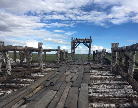 这个景点在元上都遗址里边,所以买了元上都遗址的门票进去后,便是横穿金莲川的泥道。当年元上都,背靠龙山,前触闪电湖,探八百里金莲川。金莲川每年七八月份开满了花,那些花儿都是草药,当地部落蒙古族同胞小时候都来采草制作蒙药,他们说现在的草药直接大鹏里批量种植,没有原来的香味了。