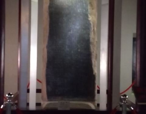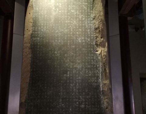 昨天週一休馆,今天一早就趕來参观,証件登记后免费参覌,馆内详列西夏的建立历史,及一些西夏文物,值得一遊。尤其是建塔石碑,兩面分别以汉文及西夏文记录重修护国寺感应塔碑文,据说是破解西夏文的重要依据,可惜时间久远,字跳模糊。
