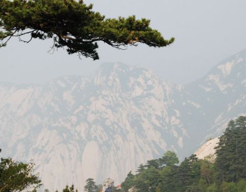 镇岳宫在华山东、西、南三峰的中央,是一座道观,虽然面积比较小,但是门前有一颗松树很大!