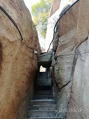 必须沿着自古华山一条路徒步登山才能经过此处,坐缆车是到不了这里的。惊心石和平心石位于华山百尺峡上端